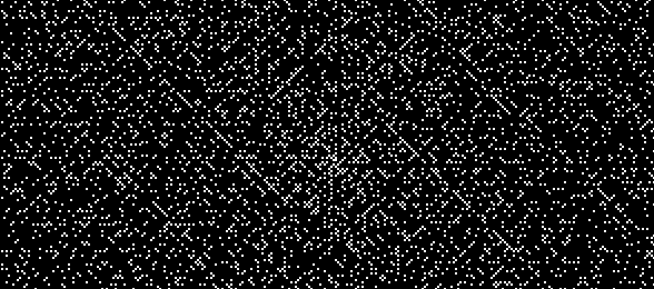 Malgré l'irrégularité de leur répartition, ceux-ci semblent s'organiser de préférence selon des diagonales, qui abondent sur le dessin. Ce arrangements correspondent à des formules du types an2 + bn + c prenant "beaucoup" de valeurs premières. Ce phénomène pour l'instant mal compris prouve que nous avons encore beaucoup à apprendre sur les nombres premiers. Stanislaw Ulam (1909-1984), mathématiciens polonais, est l'auteur de travaux en topologie et en analyse fonctionnelles ainsi que de plusieurs trouvailles fort astucieuses. Il a découvert cette particularité fortuitement en 1963 lors d'une conférence ennuyeuse. Pour passer le temps, S. Ulam s'est mis à griffonner sur un carnet (à spirales) les nombres premiers... [Merveilleux nombres premiers, Jean-Paul Delahaye, Belin - Pour la Science 2000] |