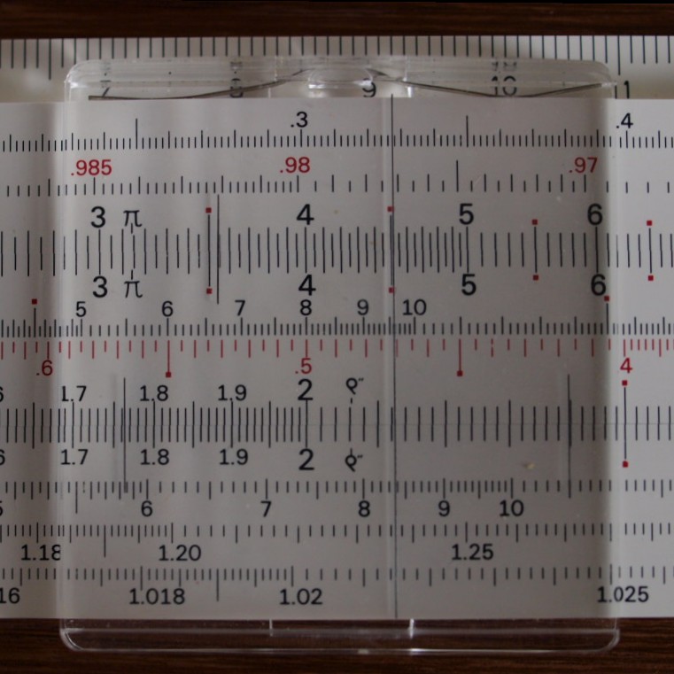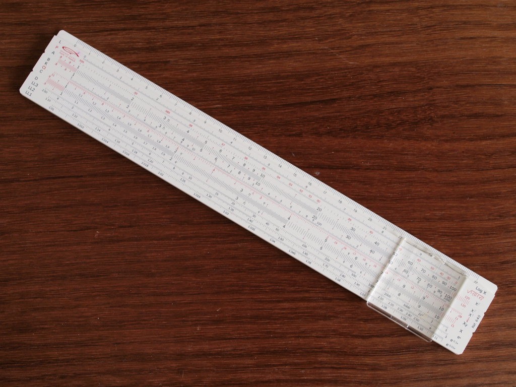 En 1970, beaucoup ne disposaient pas de moyens leur permettant d'investir dans un calculateur électronique. Pendant longtemps encore, ingénieurs et techniciens se distinguaient à la règle à calculs qui dépassait de leur poche. C'était d'ailleurs aussi le cas de nombreux futurs bacheliers, ces instruments étant seuls autorisés aux examens jusqu'en 1980. Le principe de l'objet était contenu dans l'invention du logarithme par John Napier en 1614, transformant les multiplications en additions. Il devenait possible de multiplier deux nombres en cherchant leurs logarithmes (dans une table), en additionnant ceux-ci et enfin en relevant le nombre correspondant au logarithme obtenu. Le britannique William Oughtred rendit superflues les tables en introduisant le principe de deux échelles logarithmiques coulissant l'une contre l'autre. Le détour par les logarithmes était ainsi réalisé de façon transparente : on plaçait le 1 de l'échelle supérieure en face du 1er nombre à multiplier, et en regard du 2nd nombre (lu en haut) se trouvait (en bas) le résultat. En effectuant l'opération en sens inverse, les divisions étaient obtenues aussi facilement. Le succès de ces instruments fut constant pendant trois siècles. L'apogée de cette lignée vit apparaître de subtils perfectionnements tels qu'un curseur loupe facilitant la lecture, la présence d'une échelle de carrés permettant le calcul direct de l'aire d'un disque par le biais d'une graduation judicieuse du curseur, des échelles "log-log" (logarithmes des logarithmes) LL1, L2 et LL3 permettant de calculer les puissances (grâce à la formule ln(ab)=bln(a) !), des échelles de fonctions circulaires (sans oublier une gravure "π" ) et même, conversion d'unités. ![]() La précision des gravures avait atteint un niveau suffisant pour qu'avec un peu de soin, et en calculant le dernier chiffre significatif, il soit possible d'estimer avec une raisonnable certitude des résultats sur 4 chiffres significatifs. ![]() L'auteur de ces lignes conserve religieusement dans le tiroir de son bureau la règle à calculs Graphoplex modèle 640 de sa jeunesse : Sur ce gros plan, on voit mieux l'extrême finesse attente dans la gravure des graduations sur les derniers modèles fabriqués.